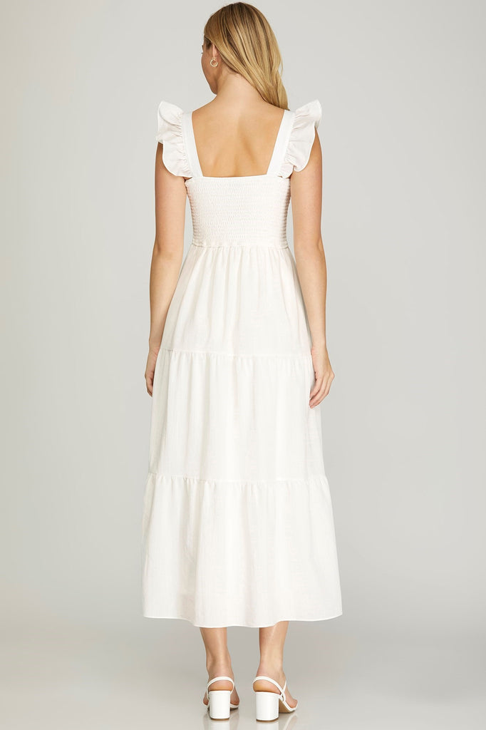 Ruffled sleeve square neck woven smocked tired dress